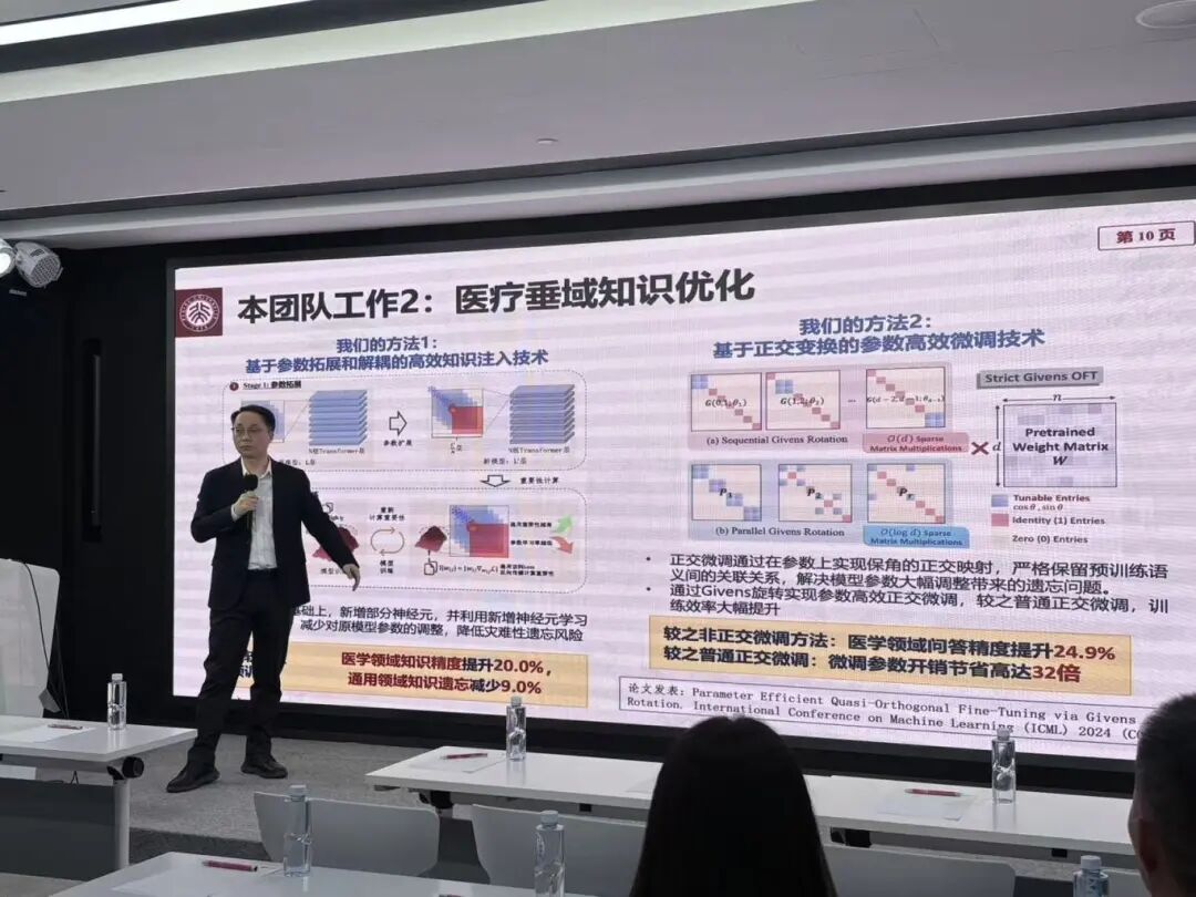 王亚沙教授以”医疗垂域大模型与系统”为主题,系统阐述了AI技术的最新发展动态: 其一,垂直领域模型虽能提升专业问题回答准确率,但存在”灾难性遗忘”风险,新增知识可能导致原有能力退化;其二,具备知识溯源能力的模型更适配医疗场景,仅能回答问题而无法解释逻辑的系统难以通过临床验证;其三,大模型在医疗影像分析等垂域场景核心功能不足,专用算法在细节识别上仍具显著优势。
