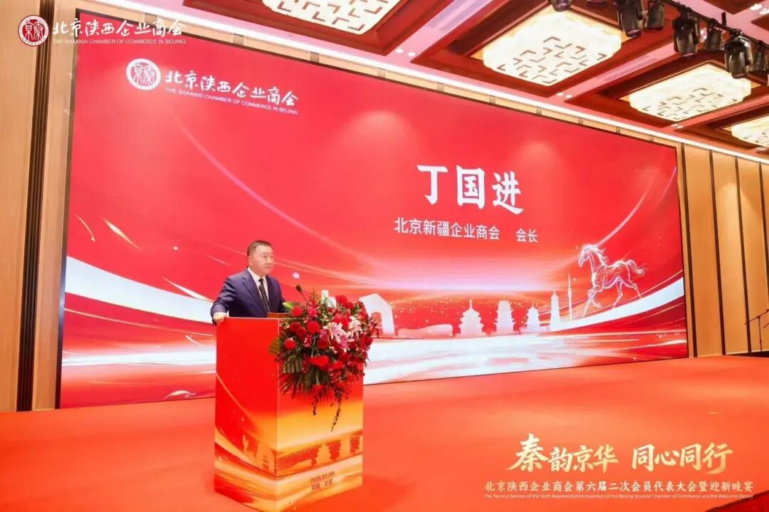 在京商会的蓬勃发展,离不开兄弟商会间的紧密协作与资源共享。本次晚宴特别邀请兄弟商会会长代表——北京新疆企业商会会长丁国进上台致辞,为这场盛会注入跨区域合作的智慧与力量。丁国进会长表示,长期以来,北京陕西企业商会与北京新疆企业商会保持着密切的友好交流,双方在资源对接、项目合作、信息共享等方面取得了丰硕成果,为在京陕商、新商企业的发展提供了有力支持。