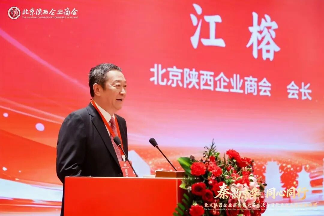 大会第一环节,由商会会长、北京月坛大厦房地产开发有限公司董事长江榕作北京陕西企业商会第六届二次会员代表大会理事会工作报告。报告系统回顾了商会自年初以来的发展历程,全面梳理了商会取得的阶段性成果与发展亮点。面向未来,商会将以”秦商精神”为引领,以更加坚定的步伐实施”铸魂工程”,强化政治引领,确保商会发展始终与时代同频。引导会员履行社会责任,传承秦商”重信重义”的优良传统;夯实”筑基工程”,加强自身建设,提升商会专业化水平。