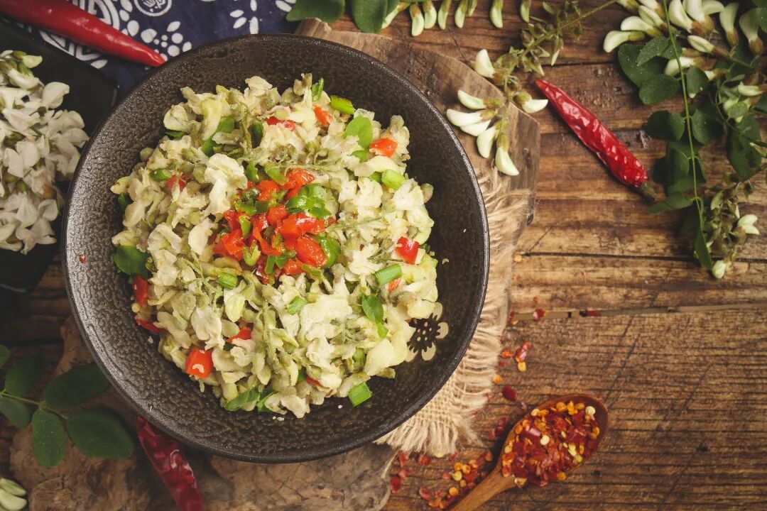 除了白蒿,老陕最喜欢的还有槐花麦饭。